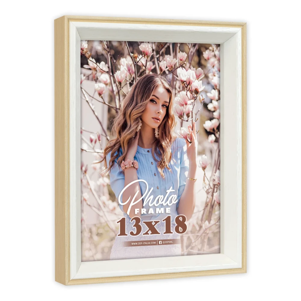 Рама Essen Natural из дерева, 13x18см, натуральный и белый цвет дерева, двухцветный квадратный профиль, стол или стена, подходит для дома и офиса.