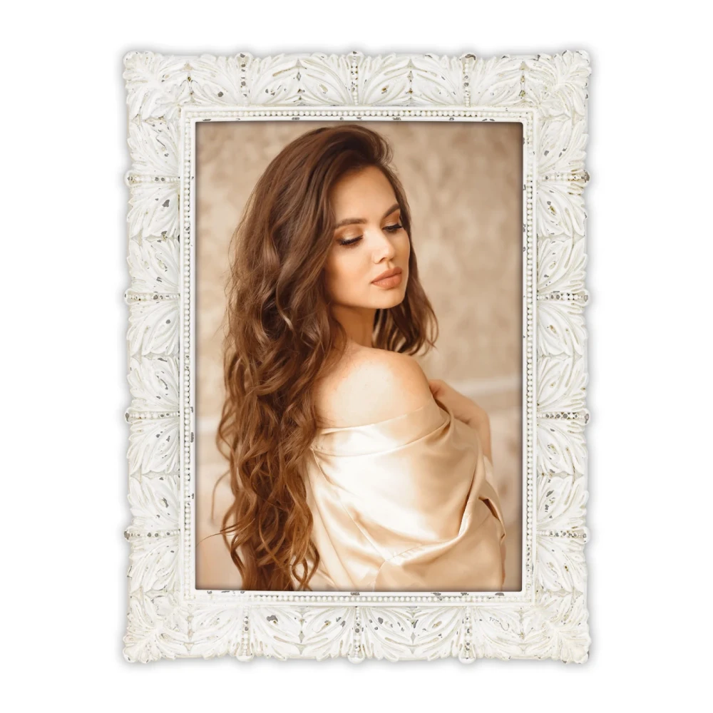Рамка из смолы, белый цвет, украшенный профиль в рельефе, элегантный и классический эффект, столешница, доступна в различных размерах, идеально подходит для празднования юбилеев или дней рождения, подходит для драгоценных или важных подарков.