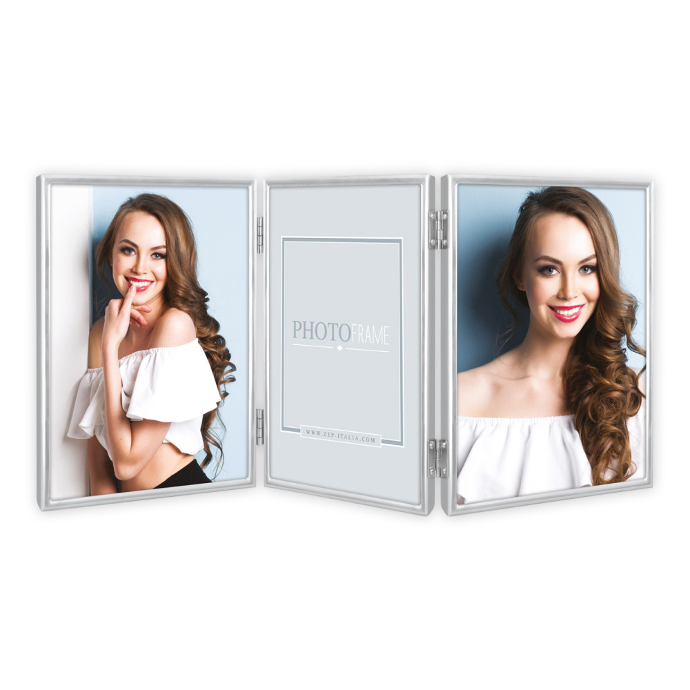 Фоторамка класса премиум от ZEP s.r.l., Италия. Металлическая рамка Silvia, с полированной отделкой, классический профиль, элегантный эффект, бархатная спинка, мультифото для 3 фотографий, стол и стена, доступны в различных размерах, идеально подходят для празднования юбилеев или дней рождения, подходят для драгоценных или важных подарков.